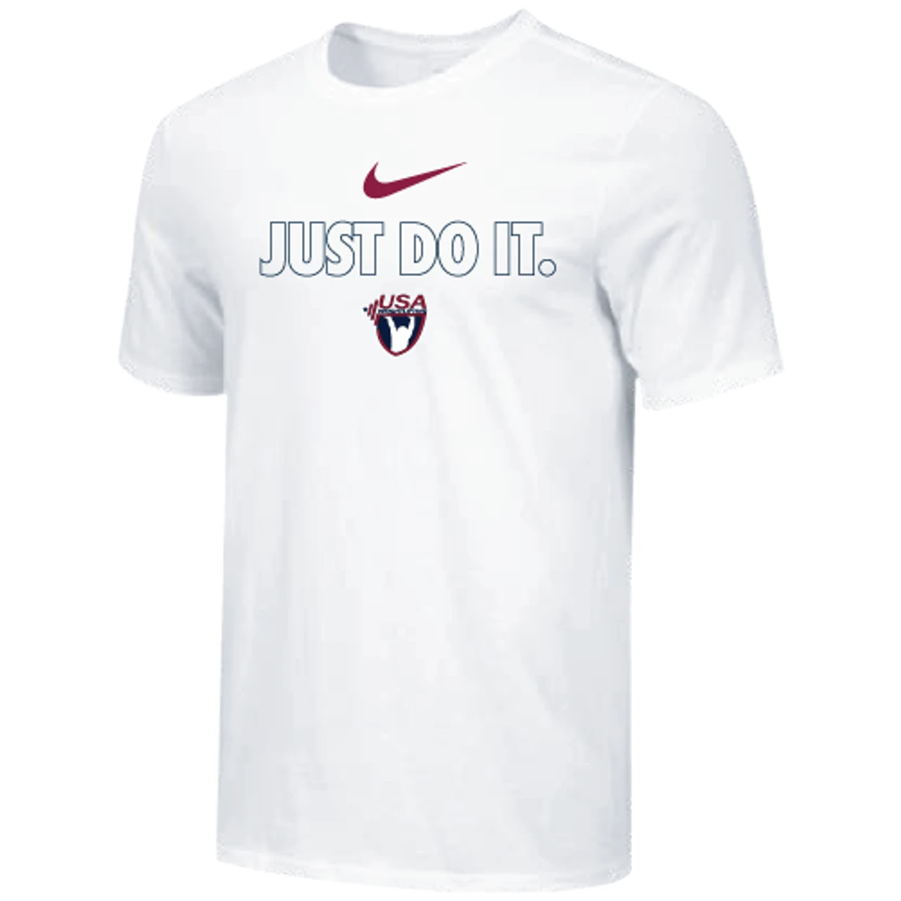 Nike Men’s USA Weightlifting Just Do It Tee – White – Form and function combine for a modernized look with less bulk in the Nike 100% Premium Ring Spun Cotton Tee.