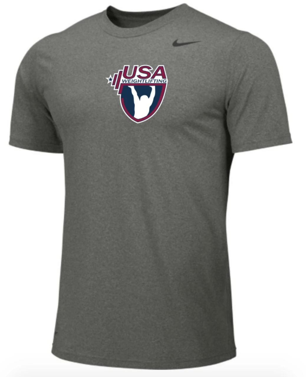 Nike Men’s USA Weightlifting Legend – Carbon Heather/ Black – The Nike Dri-FIT Legend T-Shirt is an essential layer with an odor-resistant finish that helps keep you fresh through workouts at any level. Lightweight fabric breathes and wicks sweat so you stay cool and dry from warmups well into the afterburn.