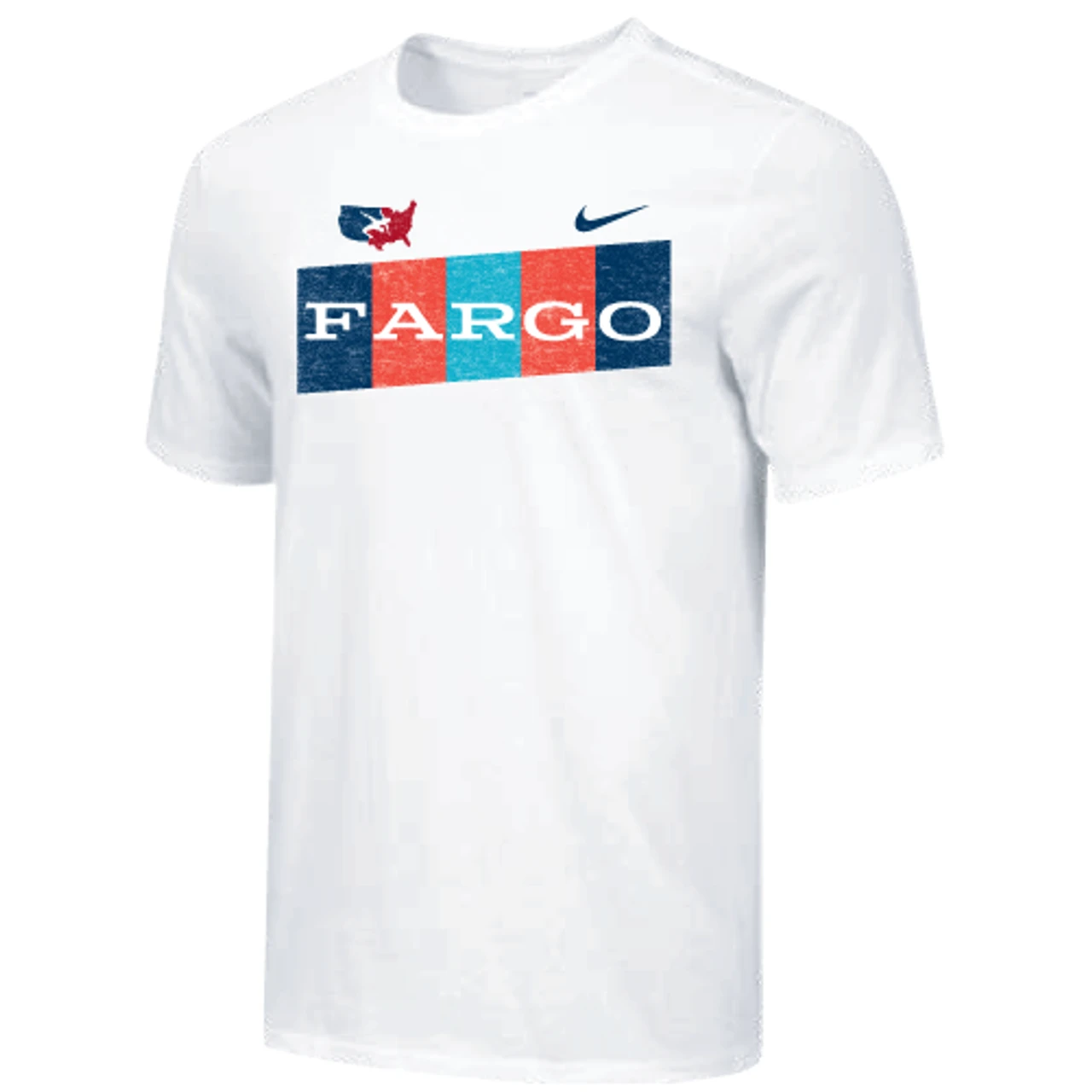 Nike Men’s USA Wrestling Fargo 2023 Horizontal Block Dri-Fit Cotton Tee – White/Multi – The Nike Dri-FIT T-Shirt delivers a soft feel, sweat-wicking performance and a great range of motion to get you through your workout in total comfort. Dri-FIT technology helps keep you dry and comfortable. 57% COTTON 43% POLYESTER