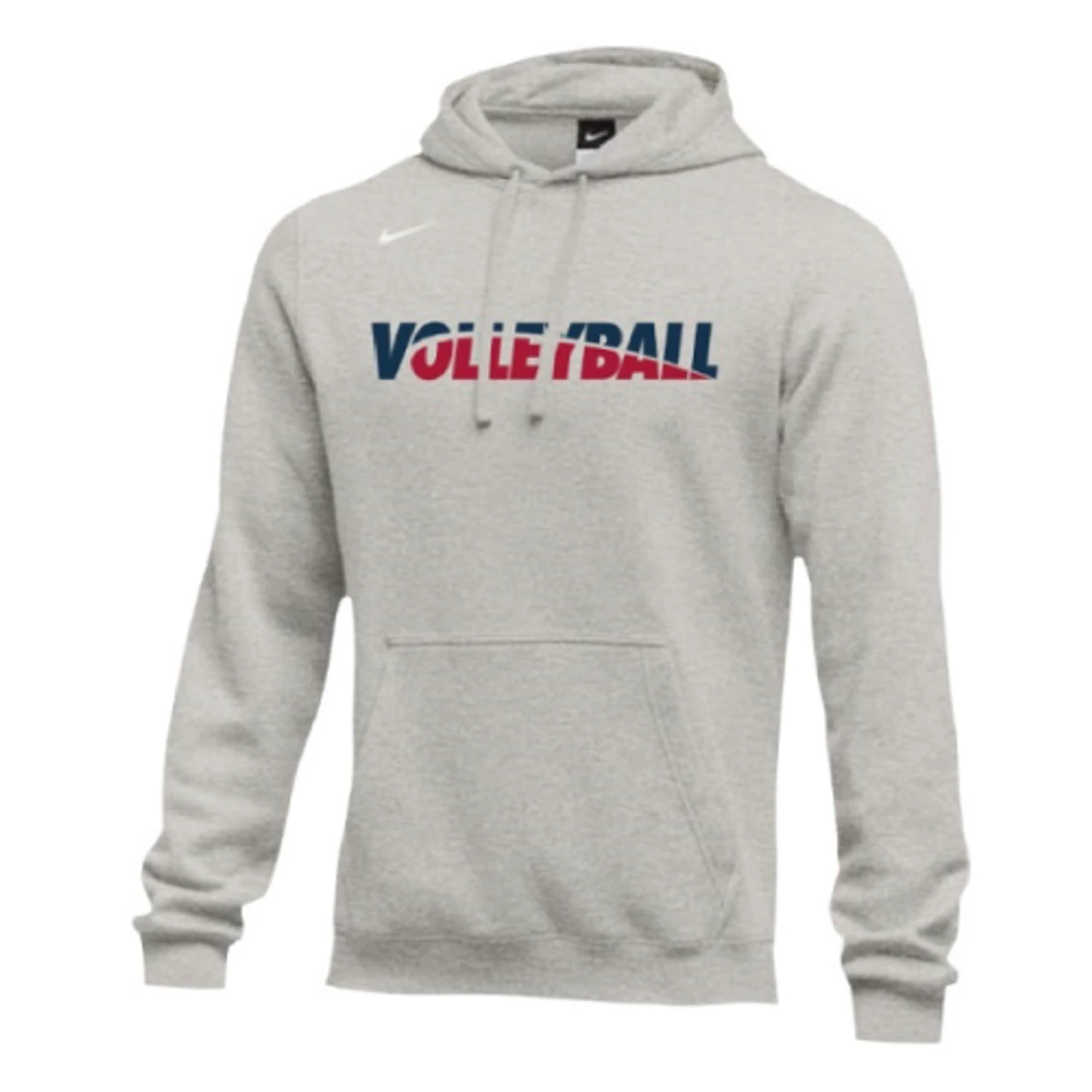 Nike Men’s Volleyball Club Fleece Hoodie – Grey/Navy/Red- This Volleyball hoodie delivers the soft comfort of French terry fabric in a classic design. It’s a versatile layer ideal for the gym, practice or for every day wear.
