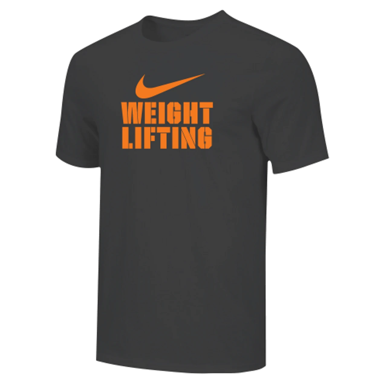 Nike Men’s Weightlifting Stacked Tee – Black/Fluorescent Orange – Form and function combine for a modernized look with less bulk in the Nike 100% Premium Ring Spun Cotton Tee.