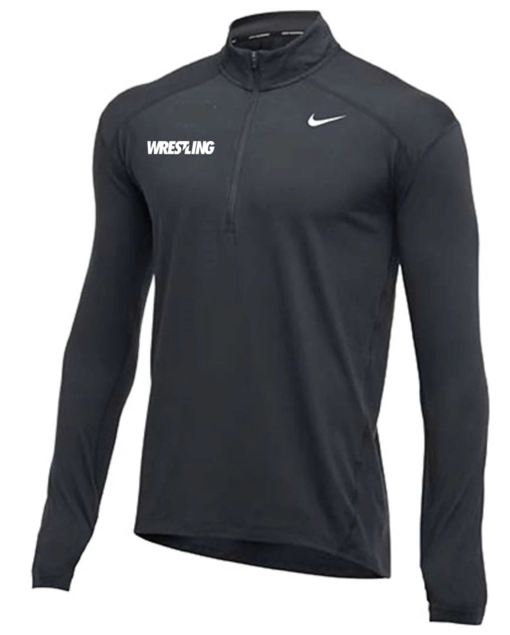 Nike Men’s Wrestling 1/2 Zip Top – Charcoal – Nike Dri-FIT technology helps you stay dry and comfortable. 1/2-zip design with a mock neck provides versatile coverage. Interior tape moves smoothly against your skin. Swoosh design trademark is printed on the right chest. 100% POLYESTER.