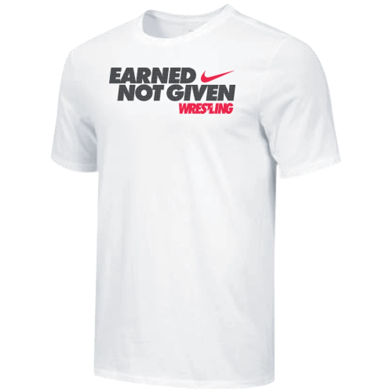 Nike Men’s Wrestling Earned Not Given Tee – White/Black/Red – Form and function combine for a modernized look with less bulk in the Nike 100% Premium Ring Spun Cotton Tee.