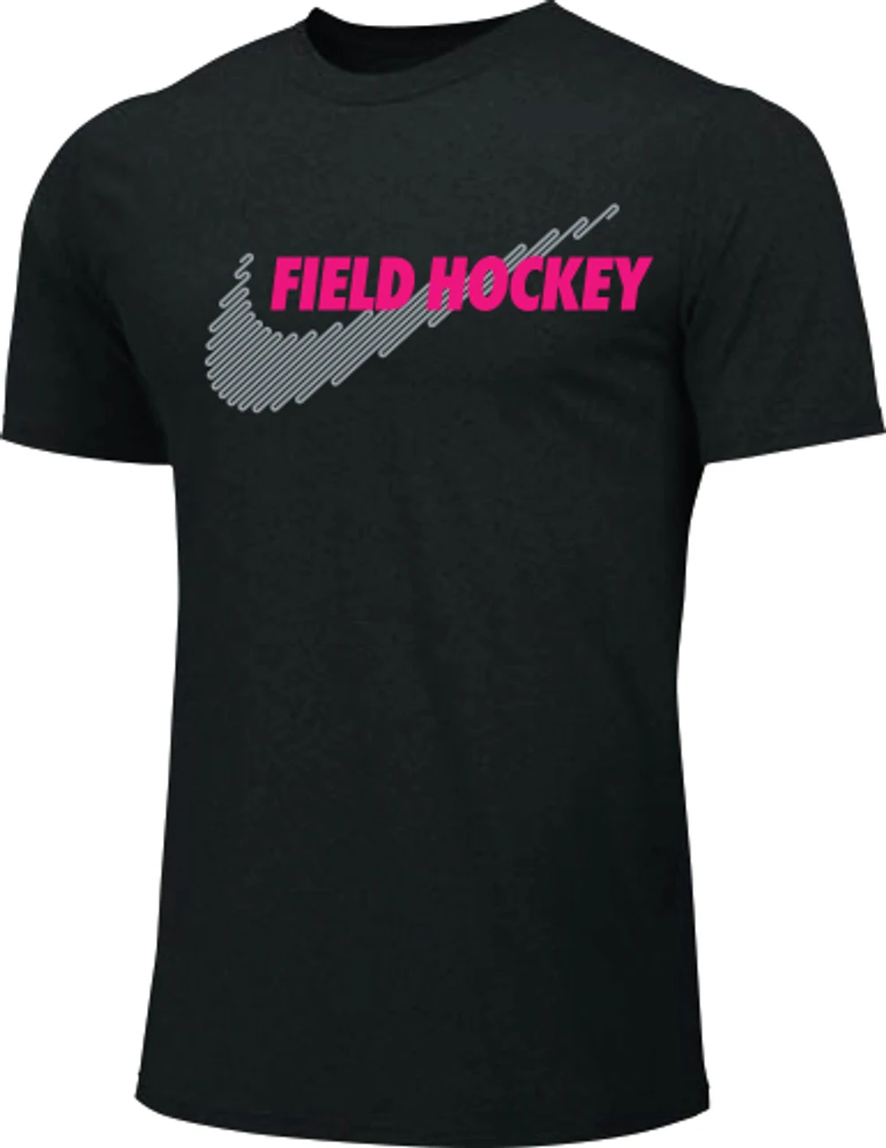 Nike Women’s Field Hockey Rawdacious Tee – Black/Grey – First Premium 100% Ring Spun Cotton Tee – Form and function combine for a modernized look with less bulk in the Nike 100% Premium Ring Spun Cotton Tee.