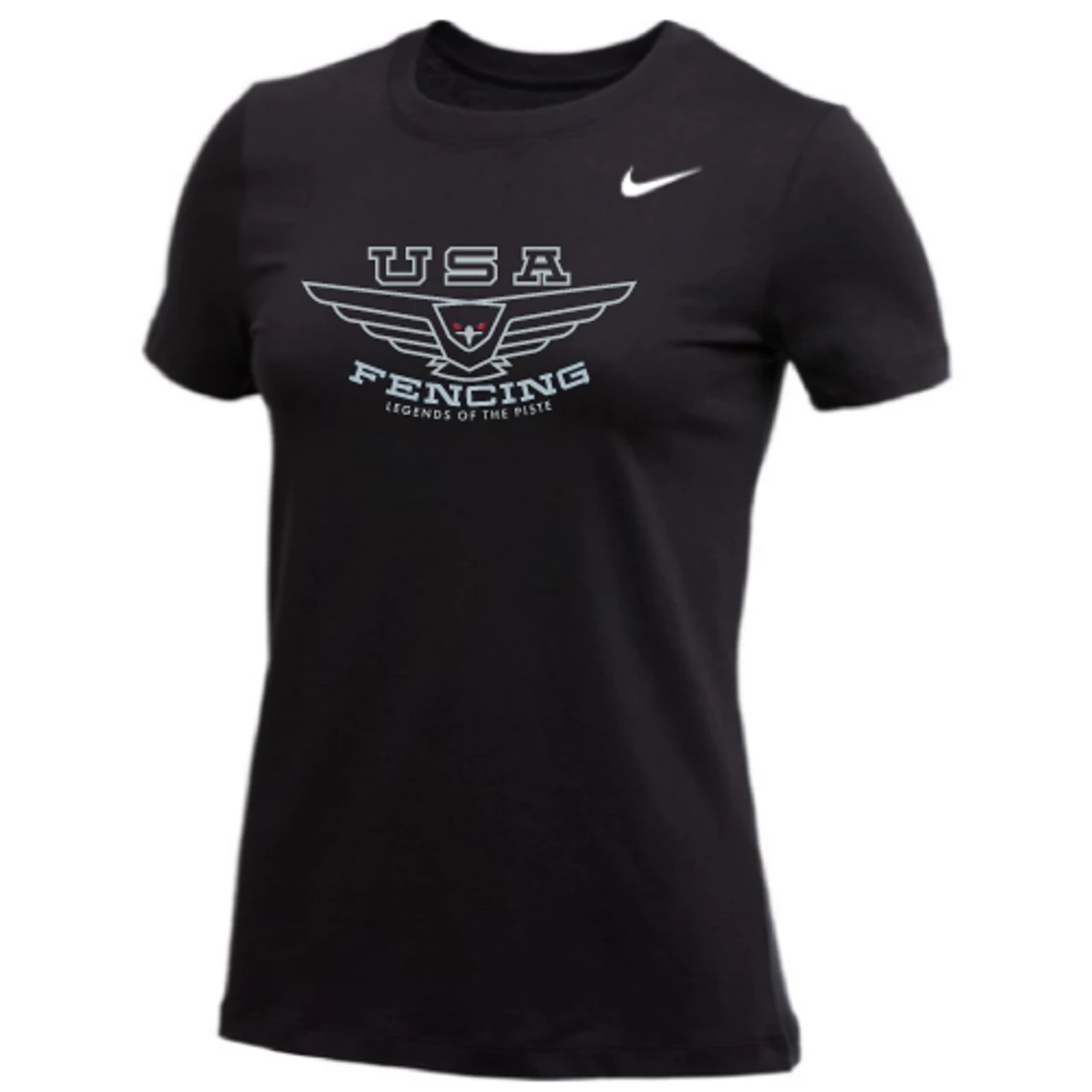 Nike Women’s USA Fencing Legends of the Piste Tee – Black/Silver – Form and function combine for a modernized look with less bulk in the Nike 100% Premium Ring Spun Cotton Tee.