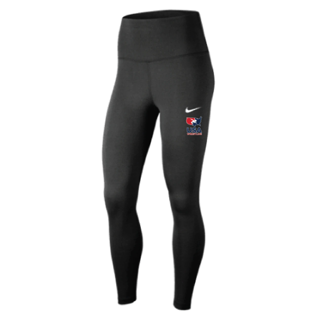 Nike Women’s USA Wrestling 7/8 Yoga Tights – Black – Enjoy the softness and comfort Nike Women’s 7/8 Yoga Tights. The high-waisted legging is stretchy and supportive, and you can move around unrestricted, whether it’s yoga, barre or Pilates. Minimal seams help reduce chafing, and create a smooth finish, while the inner pocket at the waistband is super convenient. Dri-FIT technology will work hard to keep you dry and cool as you work out.