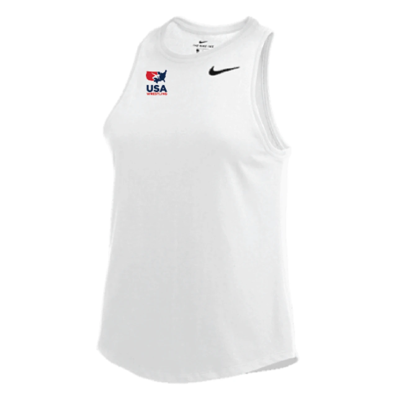 Nike Women’s USA Wrestling Left Chest Dry High Neck Tank – White – Go beyond the gym for warm weather workouts in this Dri-FIT technology that helps keep you dry, comfortable and focused. Knit fabric is lightweight and feels soft against your skin.
