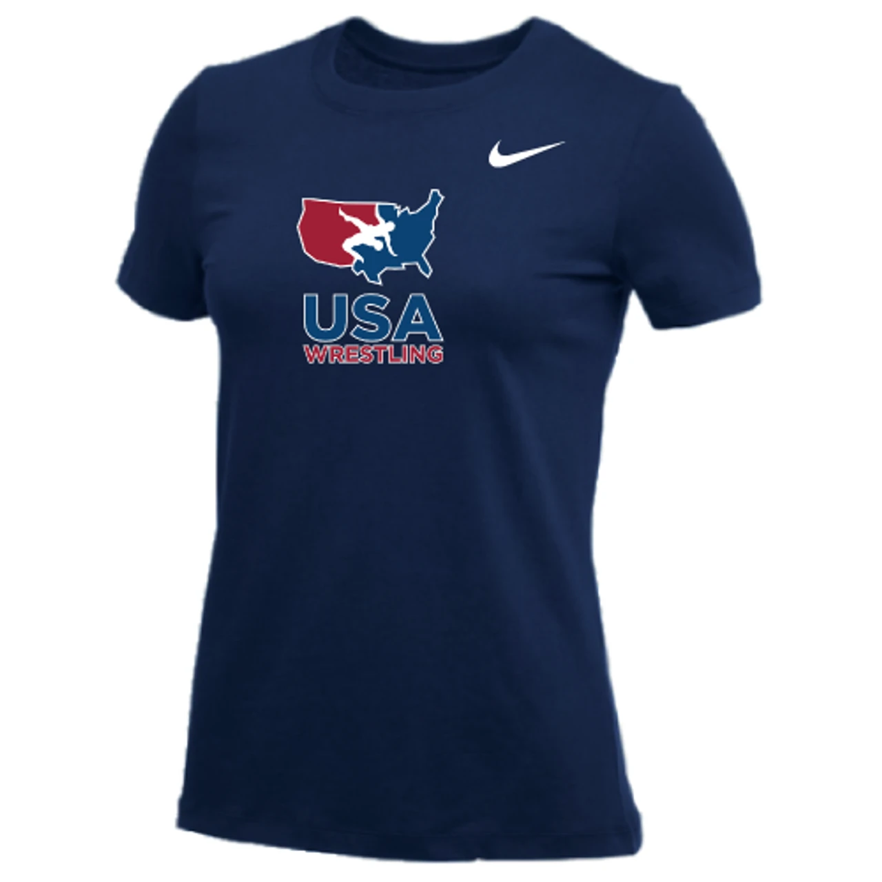 Nike Women’s USA Wrestling Tee – Navy – Form and function combine for a modernized look with less bulk in the Nike 100% Premium Ring Spun Cotton Tee.
