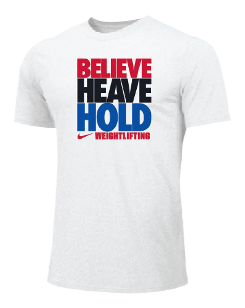 Nike Women’s Weightlifting Believe Heave Hold Tee – White/Red/Black/Blue – Form and function combine for a modernized look with less bulk in the Nike 100% Premium Ring Spun Cotton Tee.